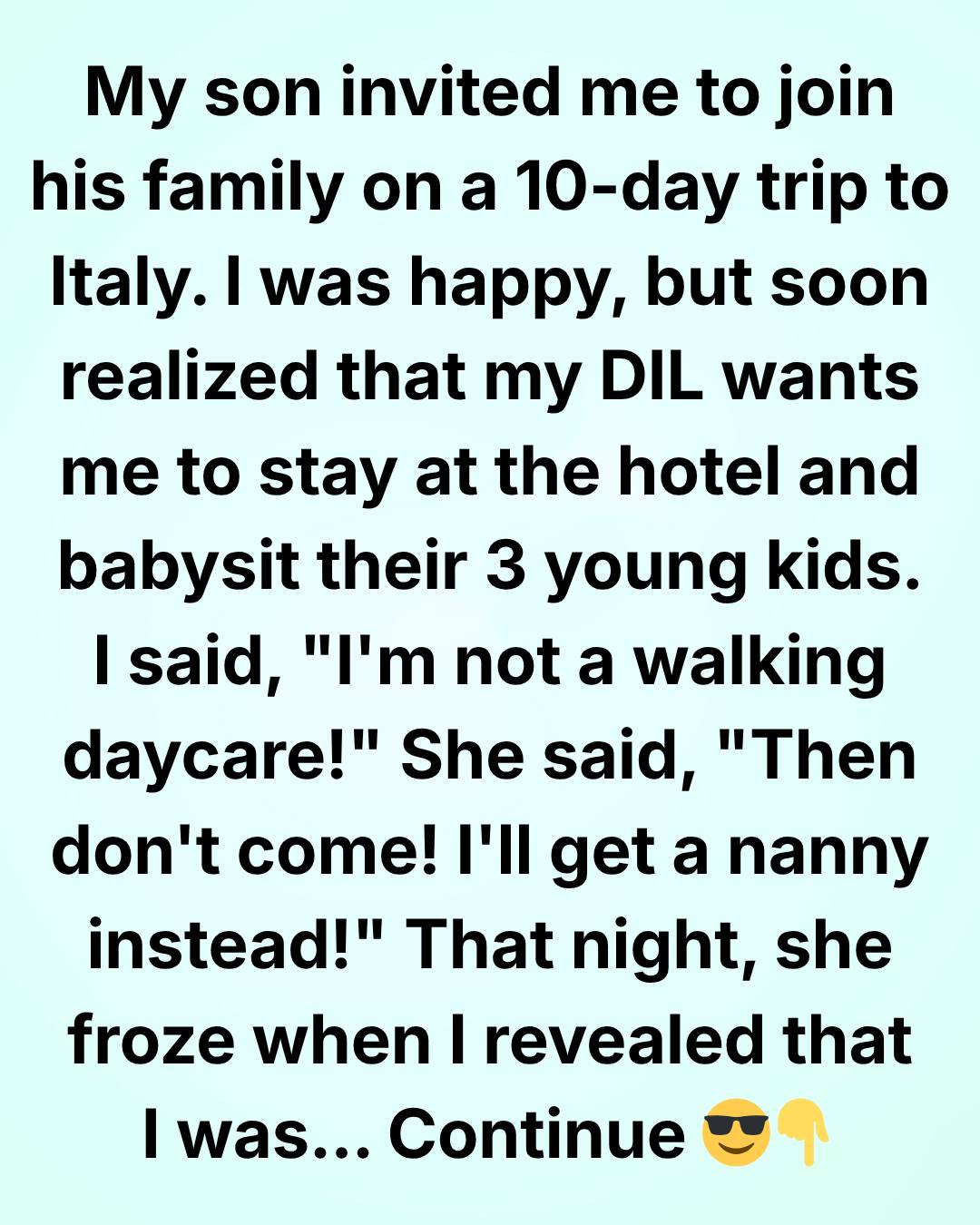 When I later revealed that I was still going and covering all my own expenses, my daughter-in-law froze. My son quickly stepped in and tried to charm me into agreeing to watch the kids, insisting that “as a grandma, it was expected of me.”