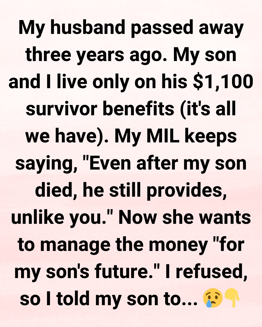 She constantly reminds me, “Even after my son died, he still provides, unlike you.” Hearing that never gets easier. And recently, she pushed things even further by insisting she should “manage the money” for Caleb’s future because she “knows what’s best.”