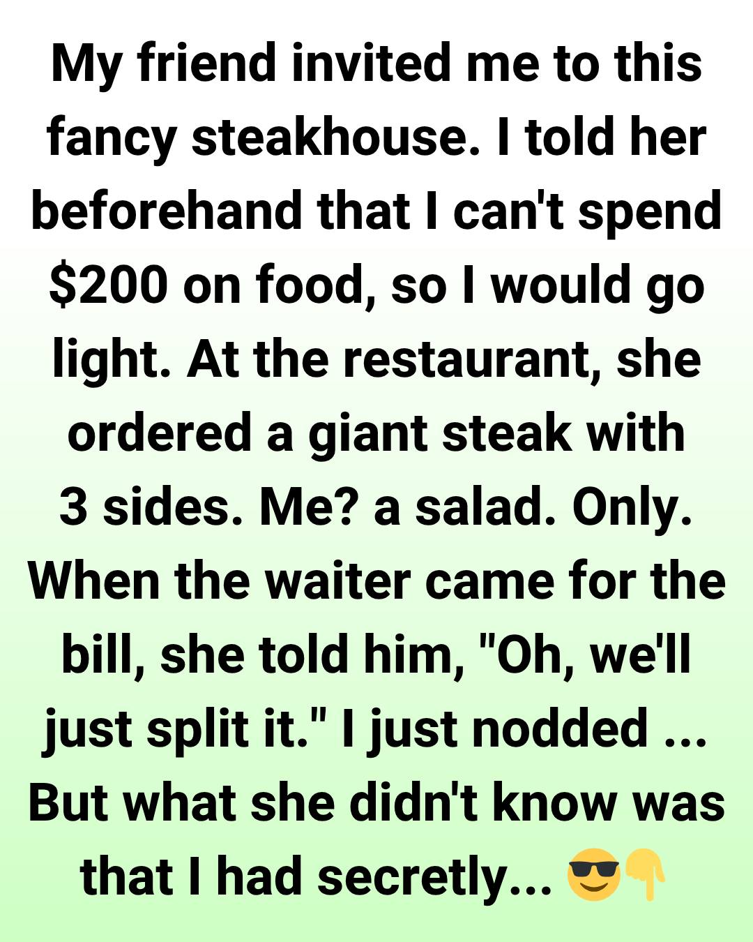 Sitting there, with her empty steak plate and my finished salad, we both realized something valuable: true friendship grows through honest communication and mutual respect.