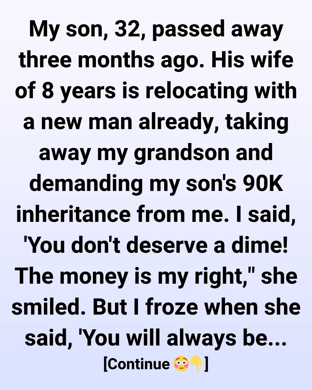 One afternoon, Lily came to visit. She sat across from me, her hands folded neatly in her lap, and asked for the inheritance Daniel had left behind—ninety thousand dollars.