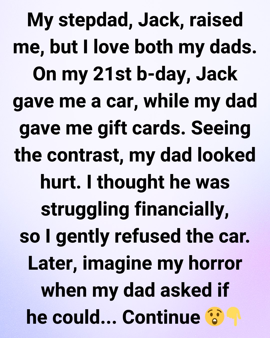 On my 21st birthday, Jack surprised me with a car. It was huge, and honestly, super generous of him. My dad gave me some gift cards, which I also appreciated. But I could see that my dad looked hurt seeing that contrast.