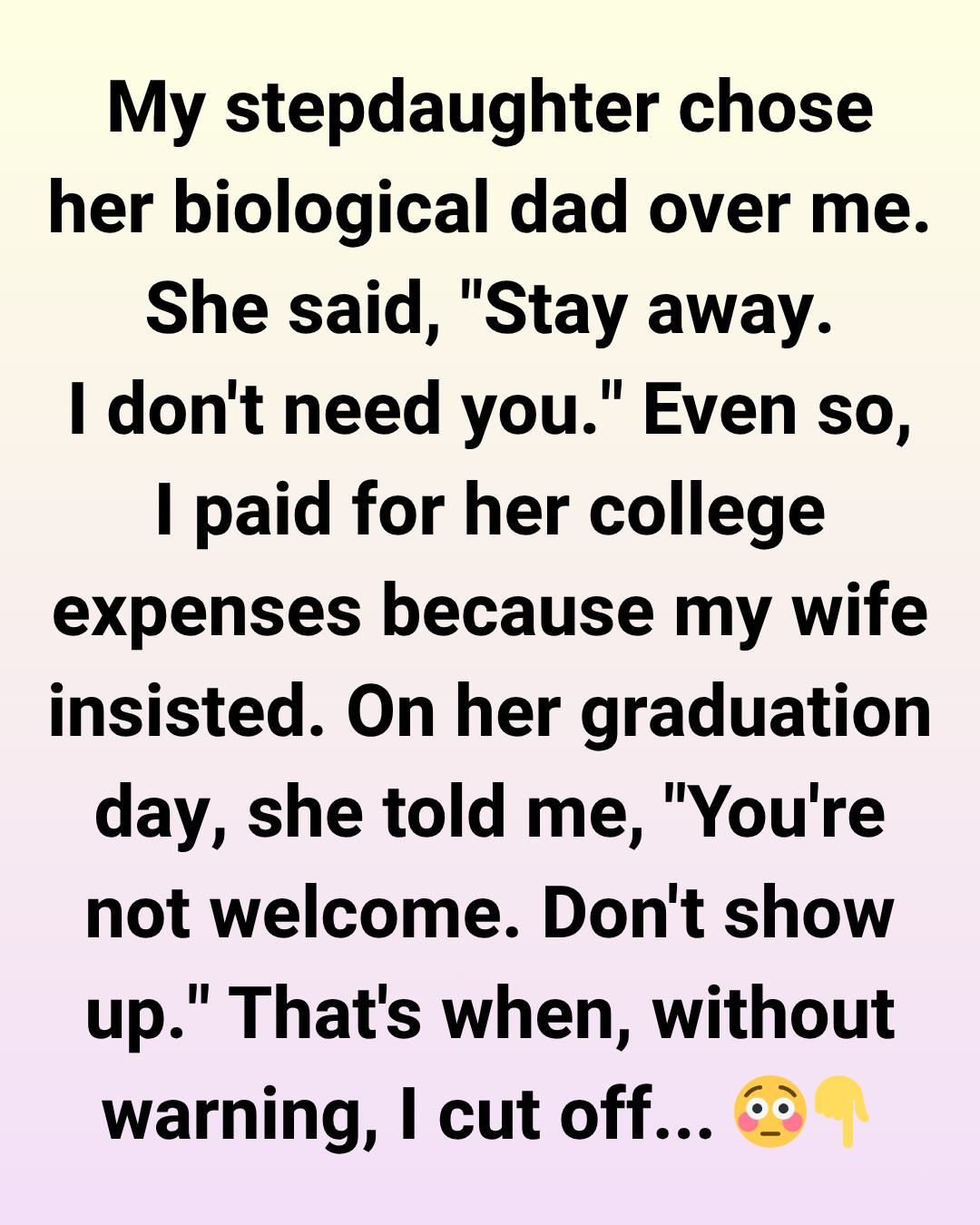 So, without warning, I cut off all financial support. My thinking was simple: if I’m not her dad, then her real dad can step in. But he couldn’t. And the truth is, I just couldn’t keep pouring money into someone who openly despised me.