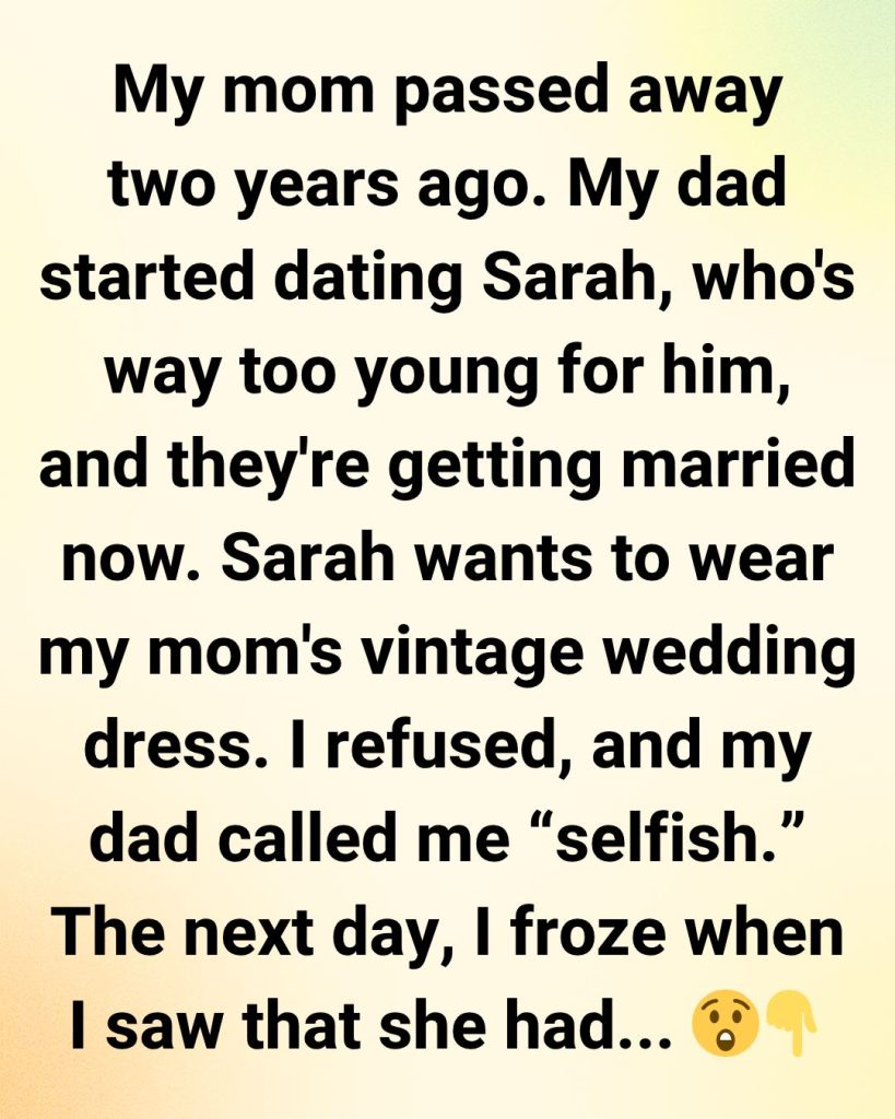 My mom passed away two years ago, and honestly, the pain still feels as raw as if it happened yesterday. A few months ago, my dad started dating someone new, Sarah. She’s nice enough, but things have gotten complicated—especially because of her fixation on my mom’s vintage dress.