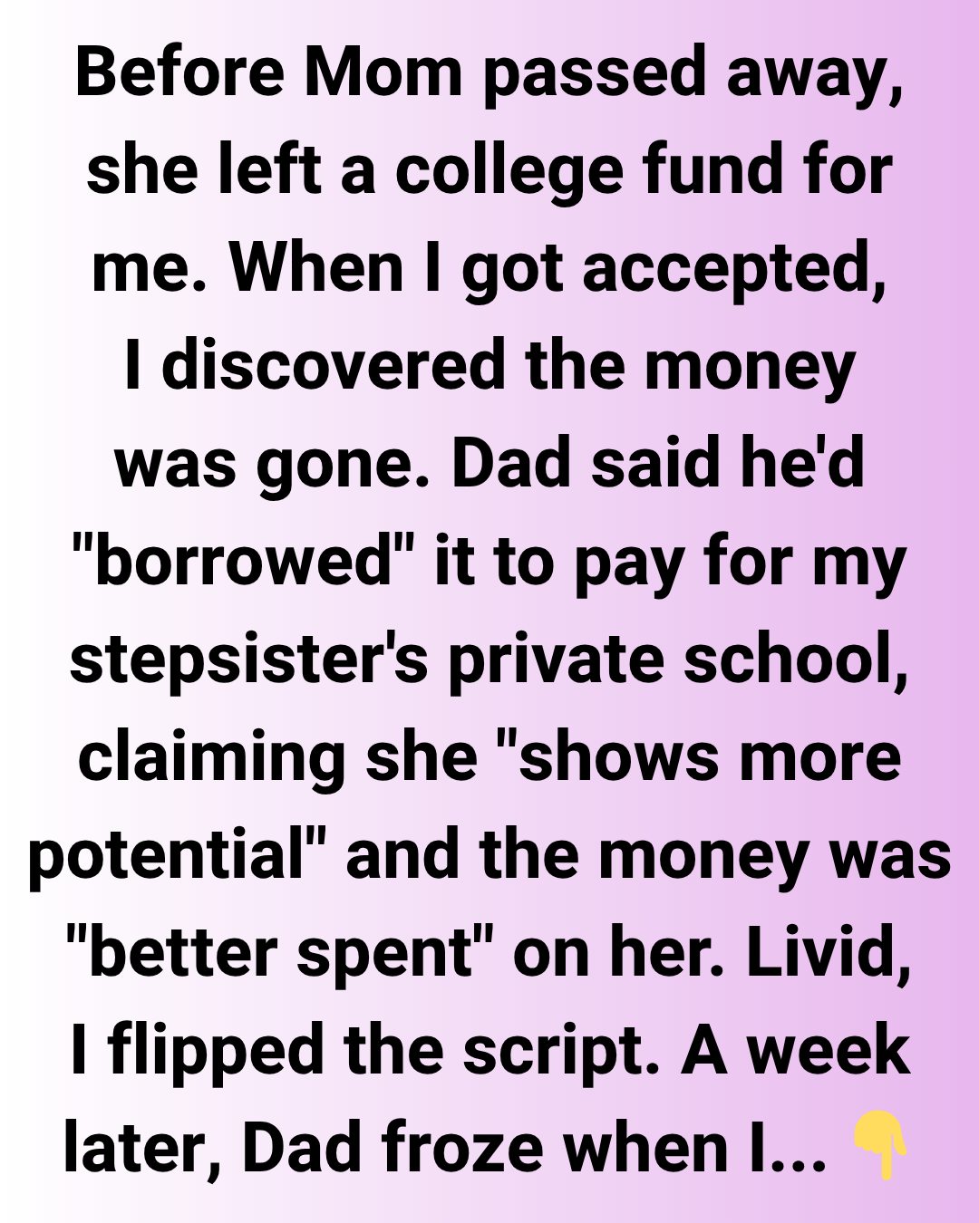 My dad eventually sat me down and explained that he had “borrowed” from my college fund to help pay for my stepsister’s private school tuition and academic programs. According to him, it was a necessary decision because she “shows more potential” and is “a brighter student” who “deserves every opportunity to succeed,” so the money was “better spent” on her. He even said it would be a “waste” not to invest in her future, implying that mine wasn’t worth the same.