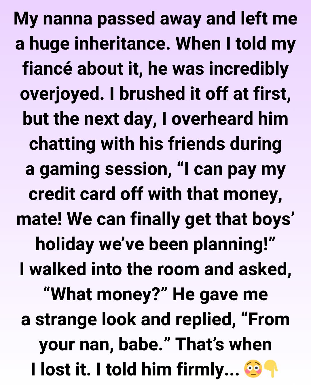 When I shared the news with my fiancé, he seemed extremely excited—more than I had expected. I brushed it off at first, but the next day, I overheard him chatting with his friends during a gaming session, saying, “I can pay my credit card off with that money, mate! We can finally get that boys’ holiday we’ve been planning!”