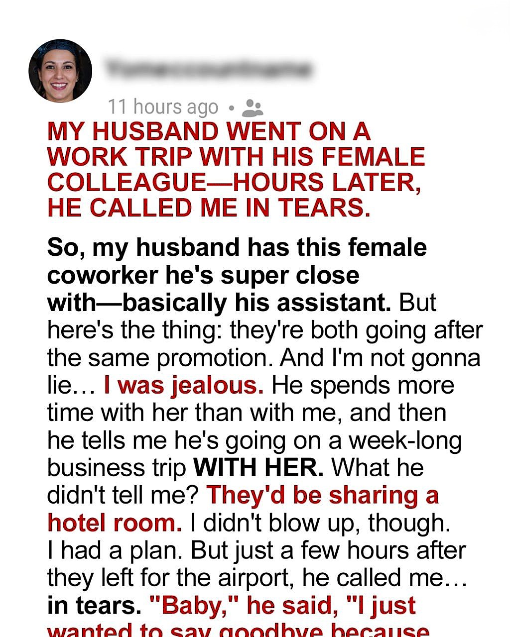 So when Cameron came home one evening and casually mentioned he’d be going on a four-day business trip with Lucy, I felt it. That slow sting in my gut crept up.