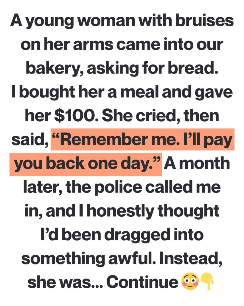 Before she left, she wiped her eyes and said something I didn’t expect: “Remember me. I’ll pay you back one day.”