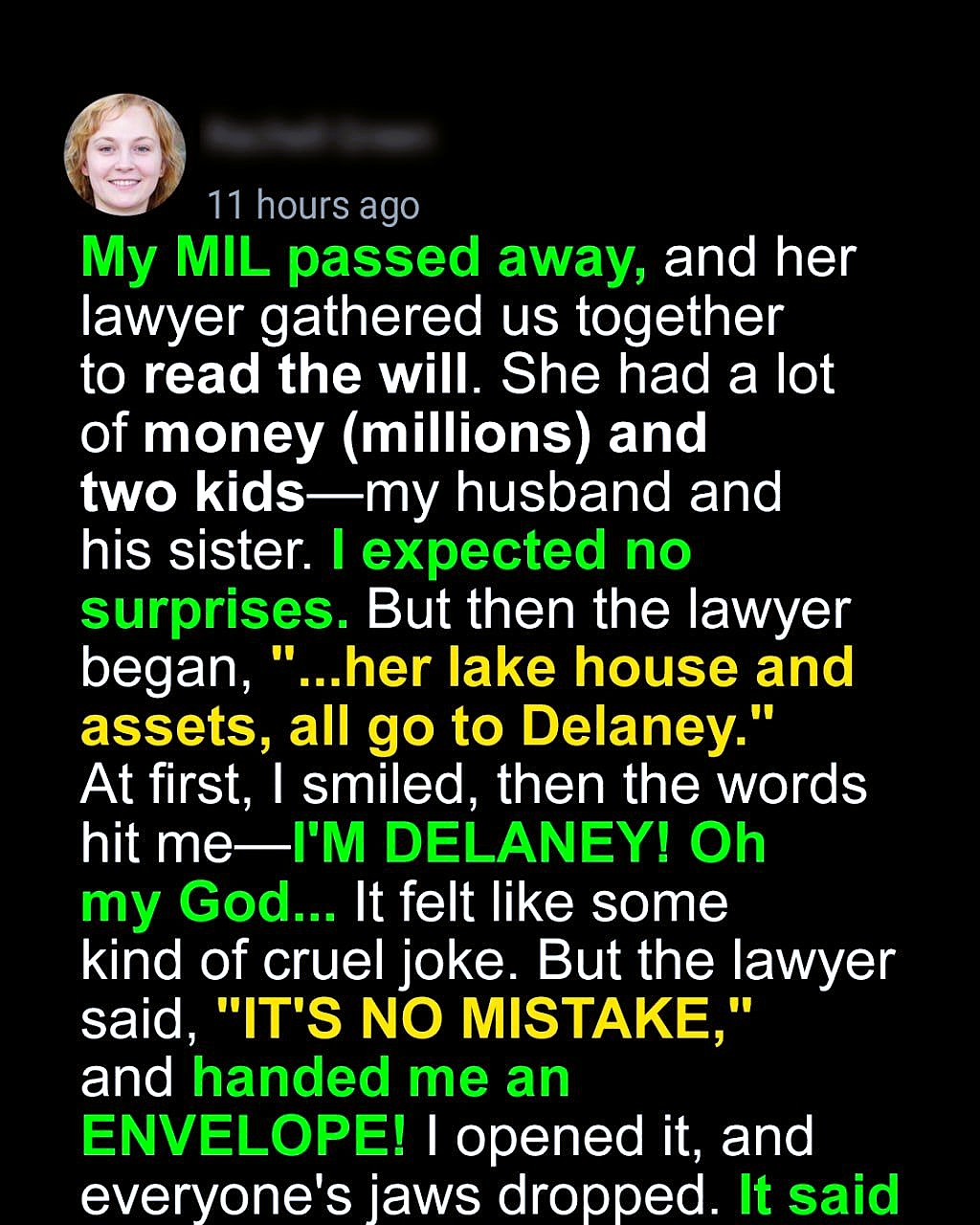 “…the entirety of her estate — including the lake house, primary residence, all assets and savings — shall be inherited by… Delaney S****.”