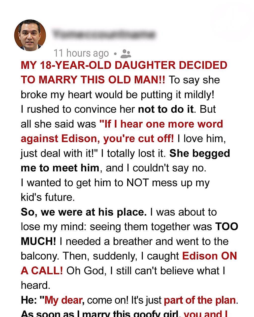 My 18-year-old daughter fell in love with a 60-year-old man and was marrying him against my wishes. She claimed she was madly in love with this guy. I was shocked when I discovered a chilling truth about him.
