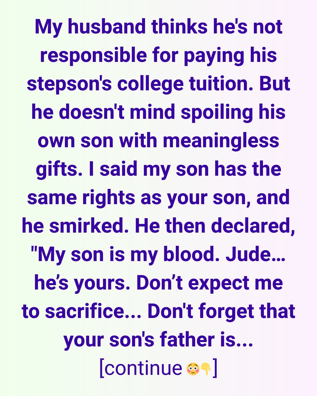 “Paul,” I said, my voice trembling, “is that why you won’t help with Jude’s tuition? Because you want to buy your son a car?”