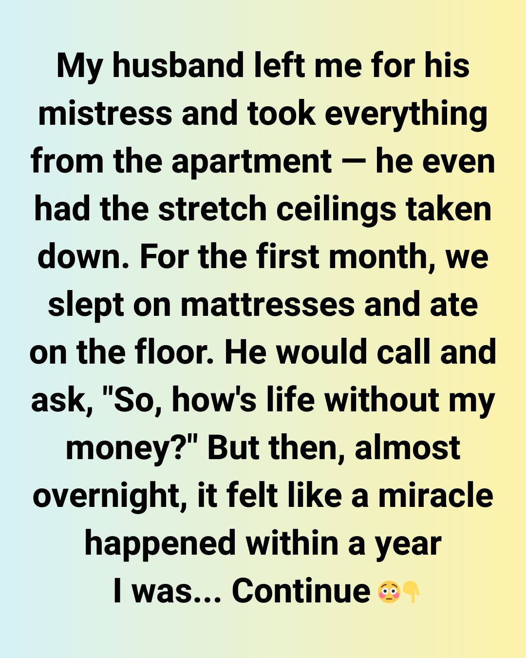 My husband left me for his mistress and took everything from the apartment — he even had the stretch ceilings taken down. For the first month we slept on mattresses and ate on the floor. He would call and ask, “So, how’s life without my money?” But then, almost overnight, it felt like a miracle happened — within a year I was earning more than the 2 of us ever made together! Neighbors brought over an old couch, my coworkers pitched in for a fridge, a friend gave me a wardrobe, and complete strangers from the Internet helped with the renovation. And then a cat showed up in our home. © game_of_mylife / Threads