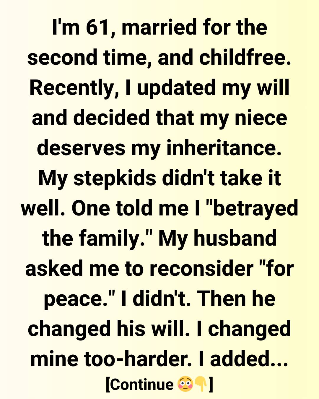 The following week, he changed his will—leaving everything to his kids. I won’t lie, that stung.