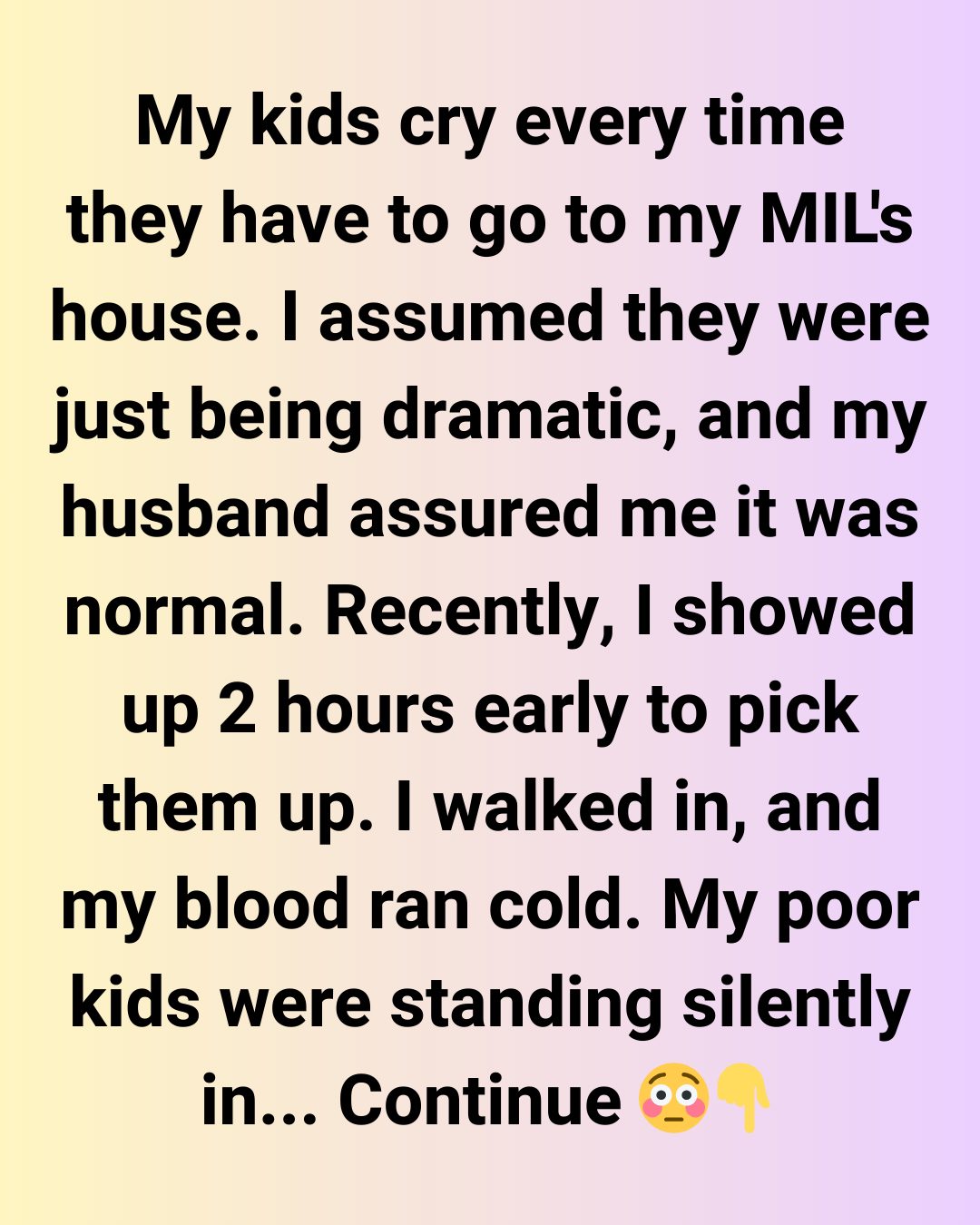 My kids cry every time they have to go to my mother-in-law’s house. I assumed they were just being dramatic, and my husband kept reassuring me it was normal.