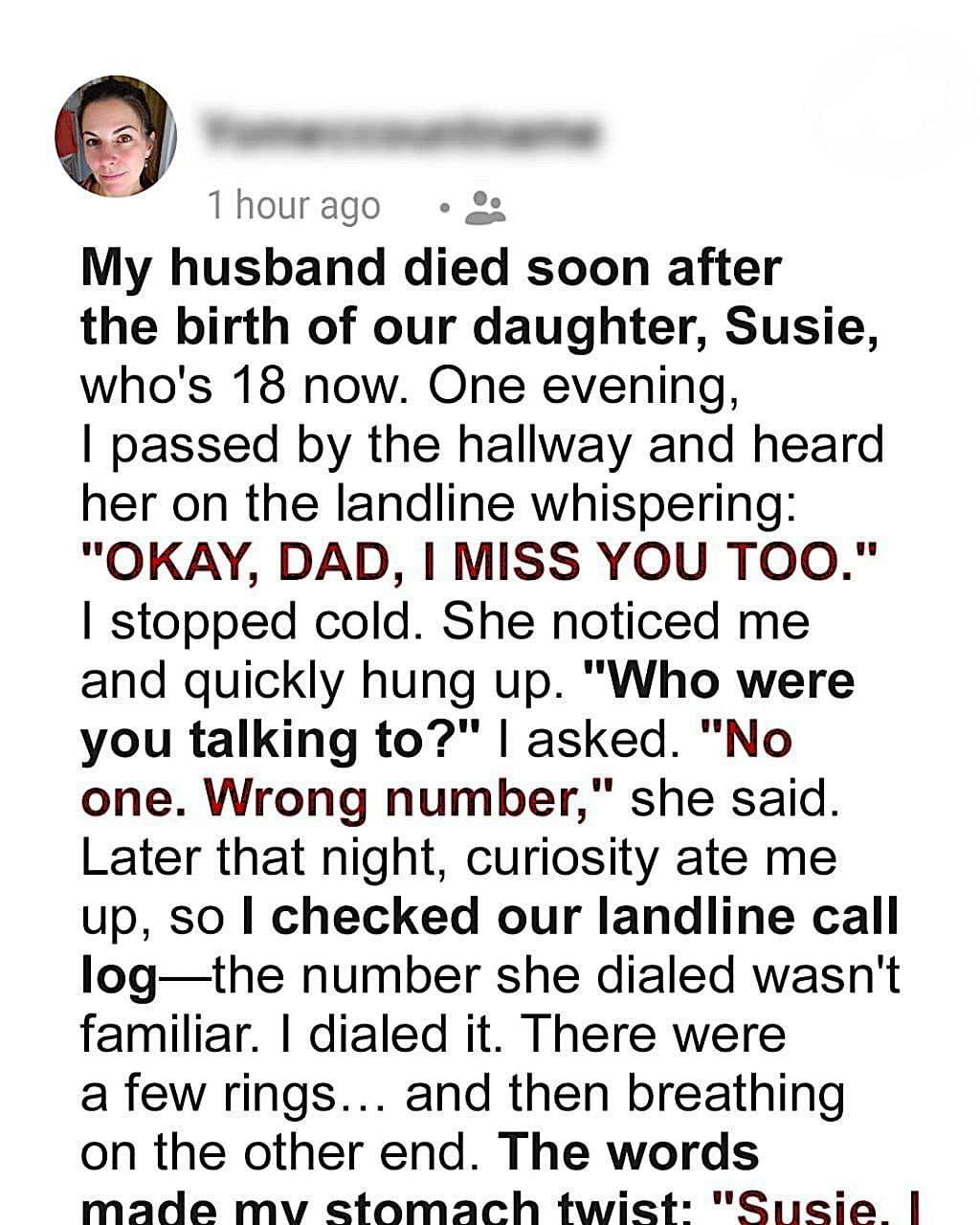It happened on an ordinary Tuesday evening. I was walking past the hallway when I heard Susie’s voice. It was low, tender, and she was whispering through the landline.