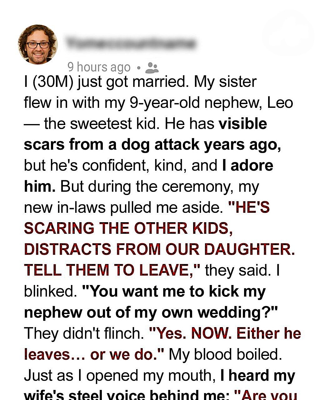 When Jack’s in-laws demanded he remove his scarred nephew from his wedding ceremony, claiming the boy was “scaring other children,” he faced an impossible choice. But he wasn’t the only one listening to their cruel ultimatum, and they never expected what his soon-to-be wife, Emily, would do next.