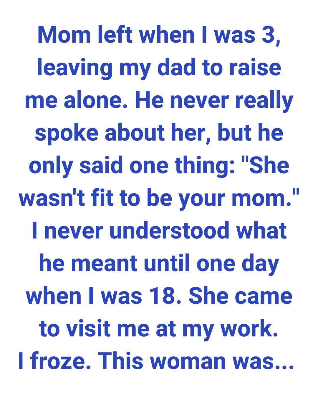 When I was three years old, my mom walked out of our lives, leaving my dad to raise me alone. I don’t remember her leaving—at that age, everything is just a blur—but I do remember the silence that followed. Dad never spoke about her. Whenever I asked, he would only say one thing: “She wasn’t fit to be your mom.”