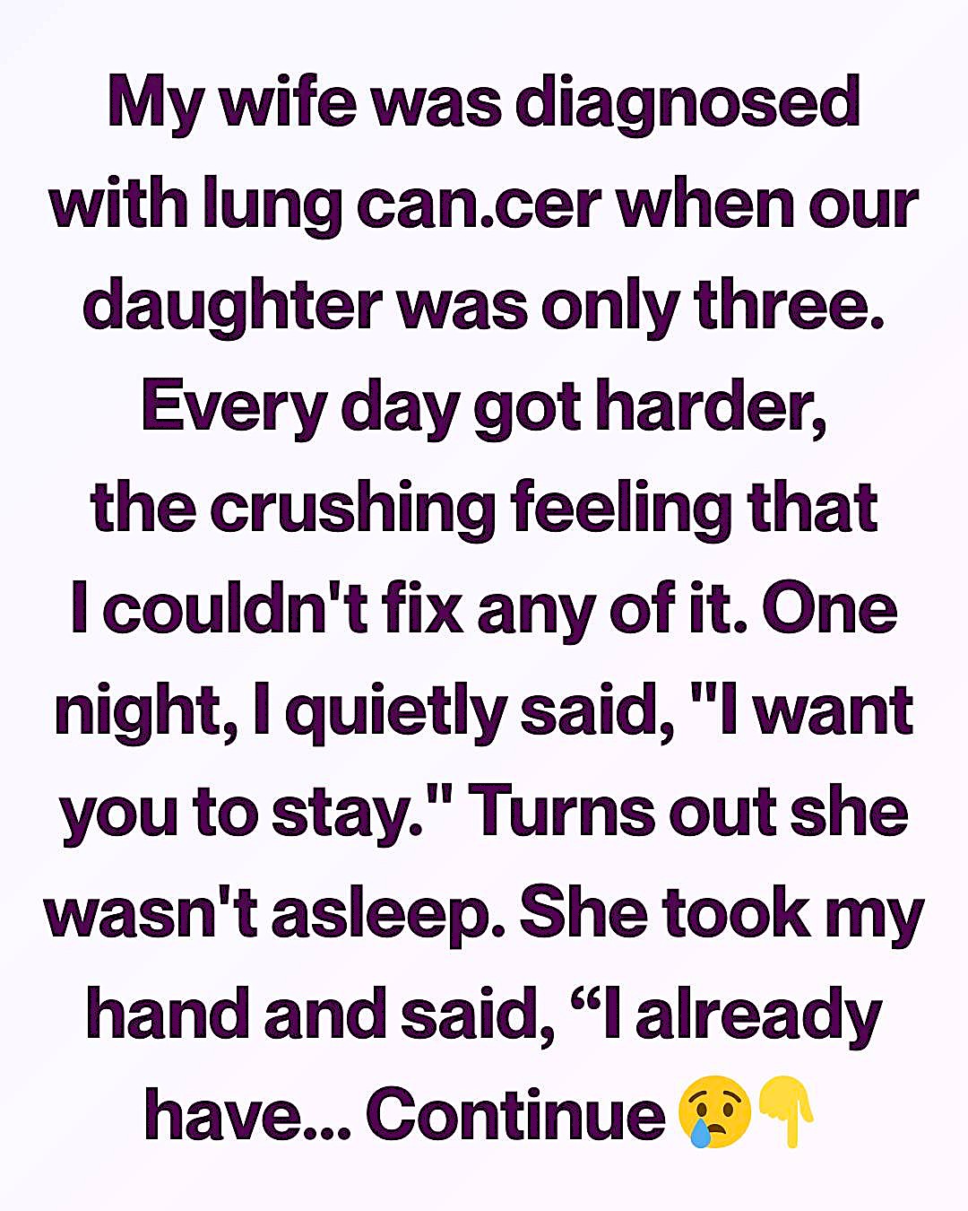 When my wife was diagnosed with lung can.cer, our daughter had just turned three. She still mispronounced her own name and believed monsters lived under the bed only if the light was off. I remember holding the doctor’s pamphlet in my shaking hands while my wife squeezed my fingers, her eyes calm in a way that terrified me more than fear ever could.