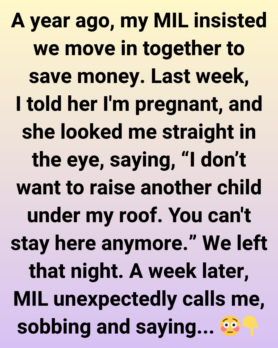 Fast-forward to last week, I find out I’m pregnant. I was nervous but also really excited. We sit down with MIL to share the news, expecting at least some kind of happy reaction. Instead, she crosses her arms, looks me dead in the eye, and said something like this, “I don’t want to raise another child under my roof. You can’t stay here anymore.”