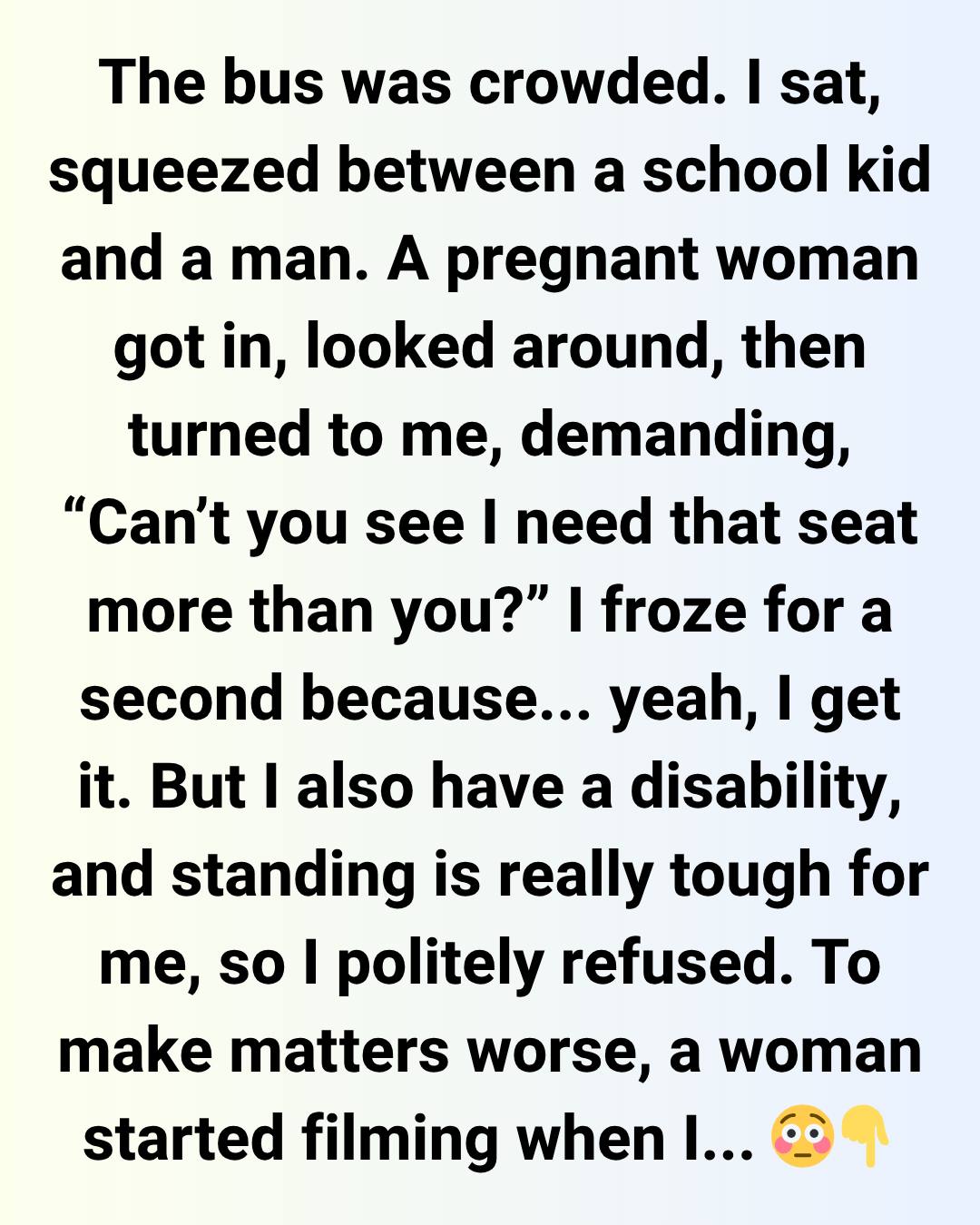 So, the other day, something happened on the bus that honestly left me feeling humiliated. It was packed, and I was lucky enough to snag a seat squeezed between a school kid and some random guy. Then a pregnant woman got on. She looked around, saw me sitting, and straight-up went, “Can’t you see I need that seat more than you?”