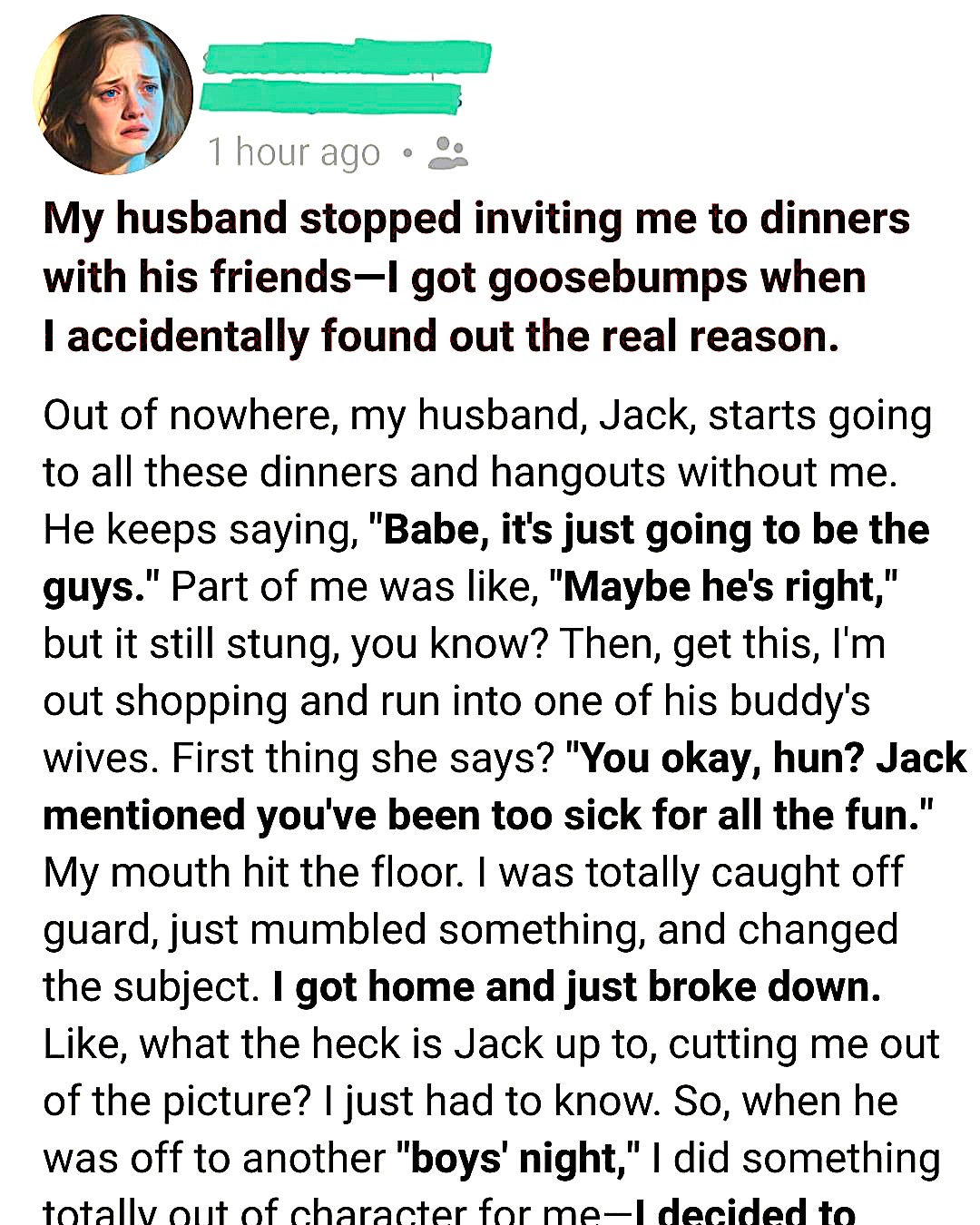 Out of nowhere, my husband, Jack, stopped inviting me to dinners with his friends. It wasn’t gradual. It was sudden—sharp enough to sting.