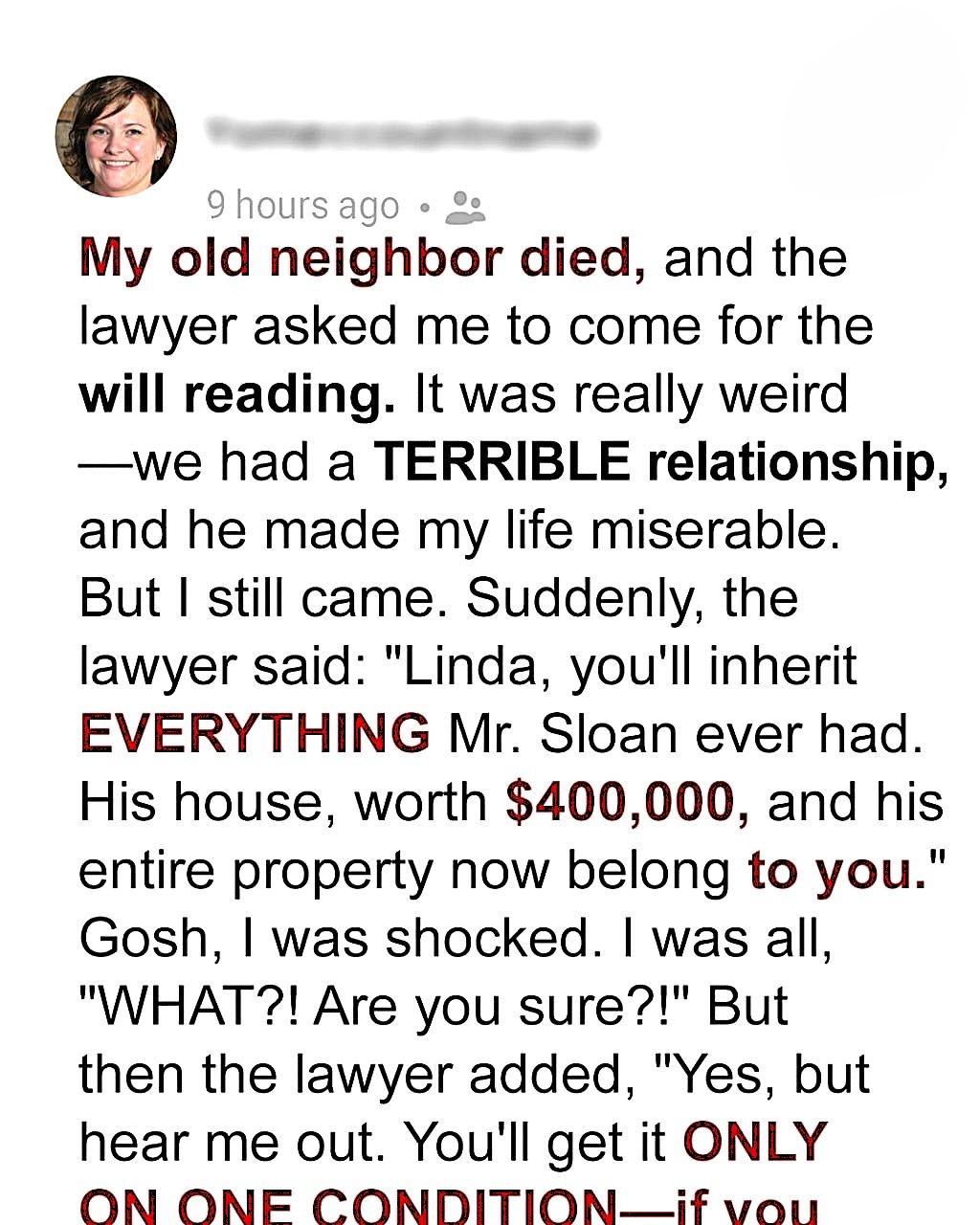 “Linda, you inherit Mr. Sloan’s house. The entire property.”