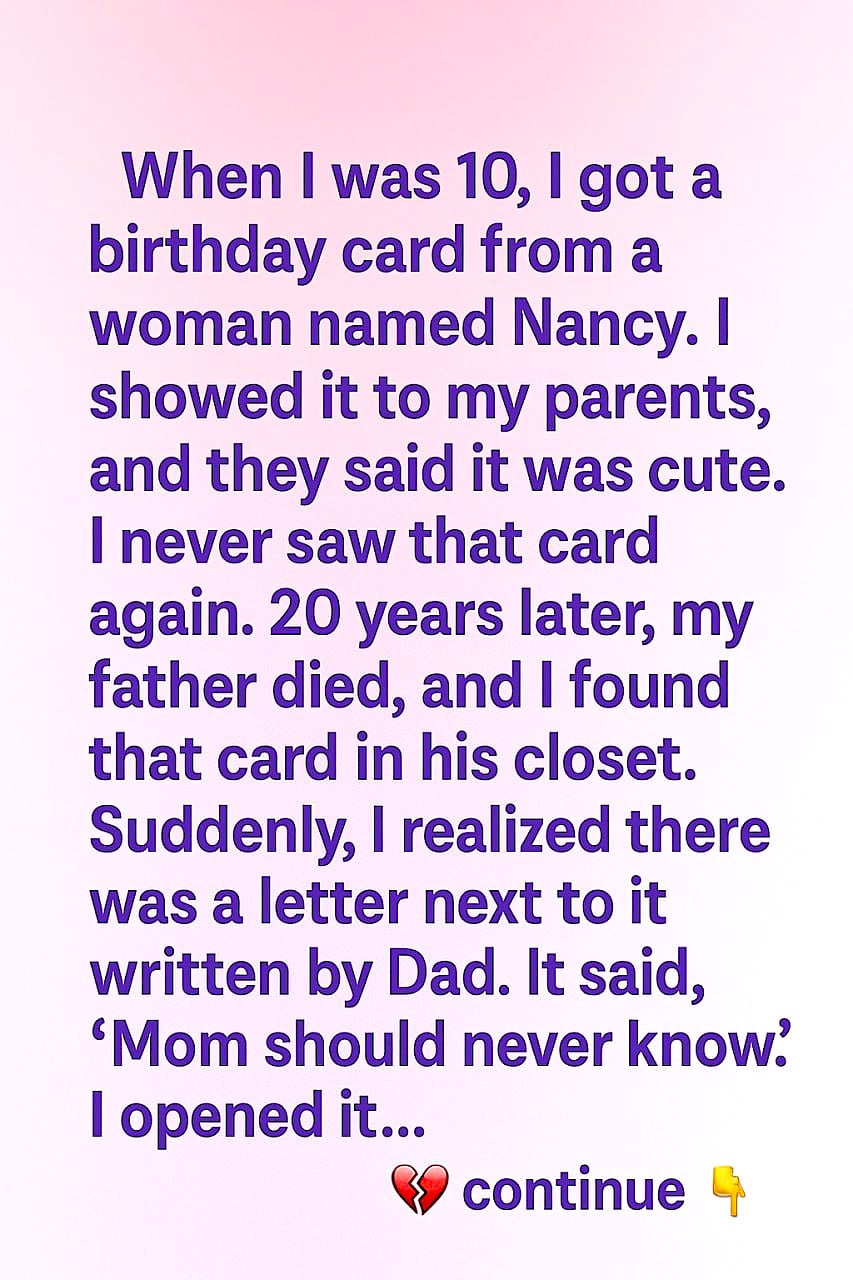 The date on the card haunted me. It was dated a few years after my parents married, but before I was born. My parents had struggled to conceive. I knew that. My mother had spoken about the heartache, the doctors, the silent prayers. And then, one day, I was there. Their miracle baby. My miracle baby.