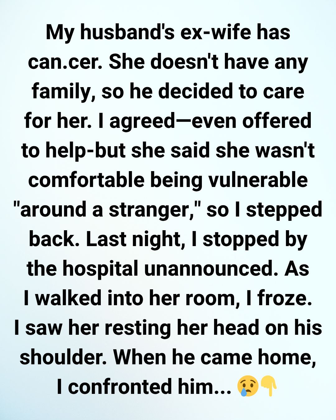 My husband’s ex-wife—the mother of his two children—was recently diagnosed with cancer. With no family to rely on, my husband told me he couldn’t let her face this alone. He said he needed to be there for her, and I supported his decision completely.