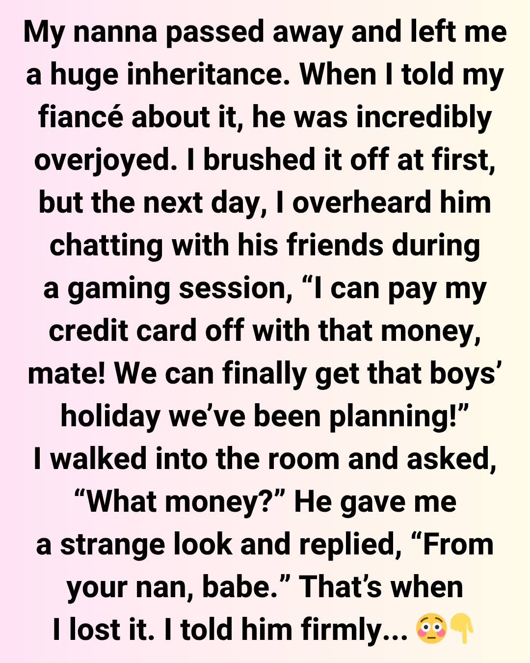 When I shared the news with my fiancé, he seemed extremely excited—more than I had expected. I brushed it off at first, but the next day, I overheard him chatting with his friends during a gaming session, saying, “I can pay my credit card off with that money, mate! We can finally get that boys’ holiday we’ve been planning!”