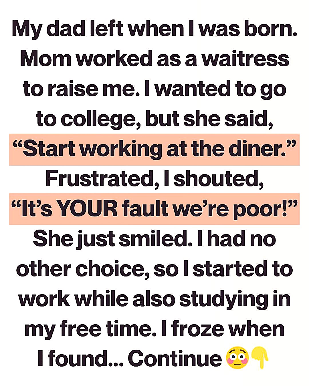 She worked as a waitress at a small diner on the edge of town. I grew up watching her tie her apron before dawn and come home long after dark, her shoes worn thin, the smell of coffee and grease clinging to her clothes. She never talked about being tired, but I saw it—in the way her shoulders slumped when she thought I wasn’t looking, in how she counted every dollar before paying the bills.