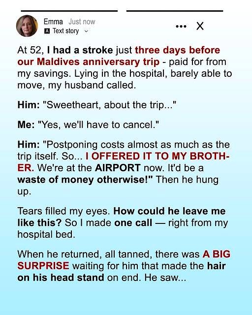 My Husband Left for the Maldives Three Days After I Had a Stroke—A Big Surprise Was Waiting for Him When He Returned