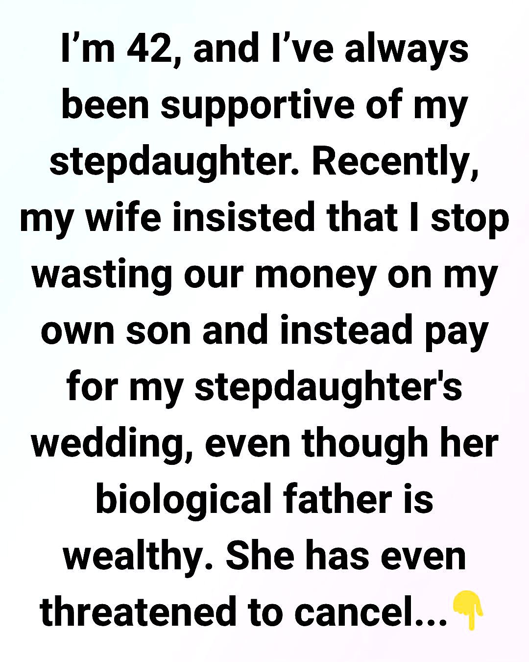 I can’t understand why supporting him makes me the villain. Why should I be expected to prioritize my stepdaughter’s wedding over my own son’s dream—especially when all I want is to give them both the chance to be happy?