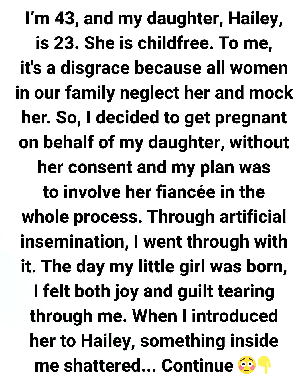 It sounds insane now, but at the time, I convinced myself it was an act of love. I told myself I’d be “helping” Hailey realize what she was missing. I thought once she saw a baby in her arms — her own flesh and blood — she’d feel that instinct awaken.