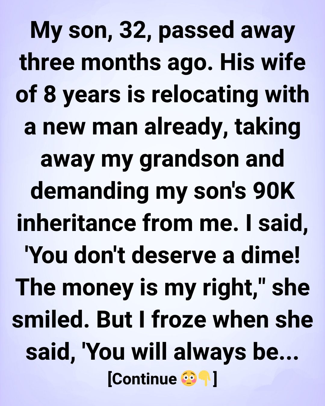 One afternoon, Lily came to visit. She sat across from me, her hands folded neatly in her lap, and asked for the inheritance Daniel had left behind—ninety thousand dollars.