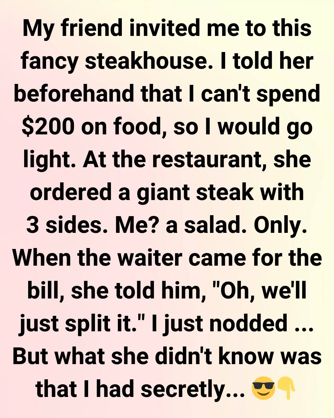 Sitting there, with her empty steak plate and my finished salad, we both realized something valuable: true friendship grows through honest communication and mutual respect.