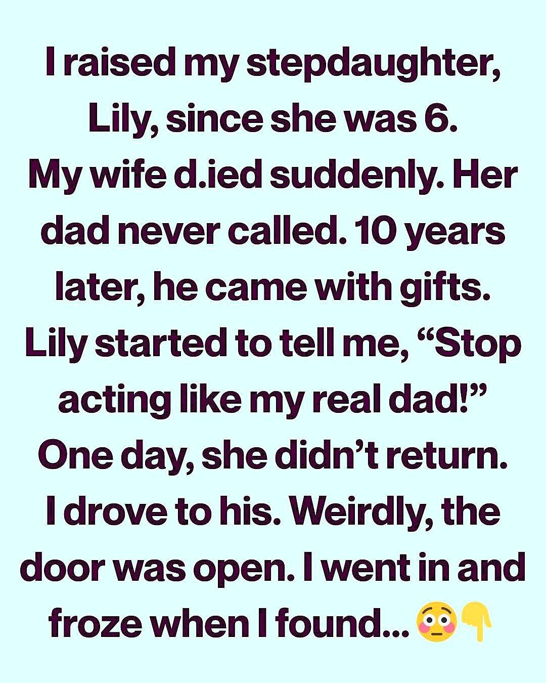 Her mother—my wife—died suddenly, leaving the two of us alone in a quiet house that still smelled like her perfume. Lily’s biological father disappeared almost overnight. No phone calls. No birthday cards. No questions about school or scraped knees. For ten years, it was just Lily and me.