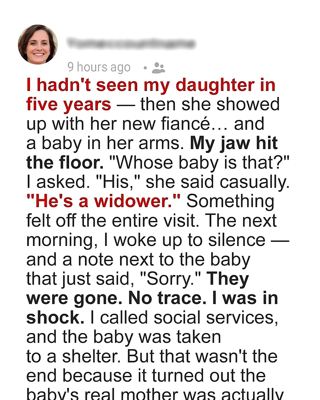 When my daughter returned after being gone for five years, she brought her fiancé — and his 6-month-old baby. I had barely wrapped my head around the bizarre visit when I woke to find them both gone. Just a note beside the crib: “Sorry.” But that was only the beginning of the nightmare.