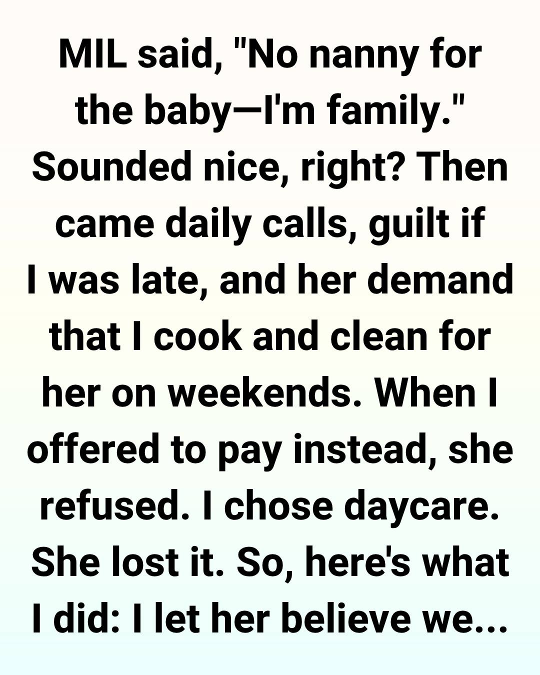 She was thrilled — until she realized I never asked her to babysit again. Now she constantly complains that she “hardly sees her grandchild.”