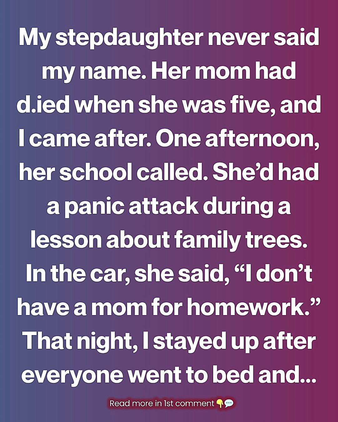 If she needed a permission slip signed or a snack after school, she’d ask her dad to ask me. If I tried to help directly, she’d stiffen, like my voice itself was something sharp. Her mother had died when she was five—sudden, cruel, the kind of loss that leaves a permanent echo. I was the woman who arrived afterward, when the worst had already carved its place in the house.