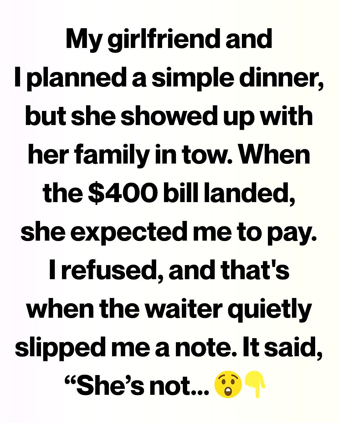 By the time the plates were cleared, my chest felt tight. When the bill landed on the table, I saw the total: $400.