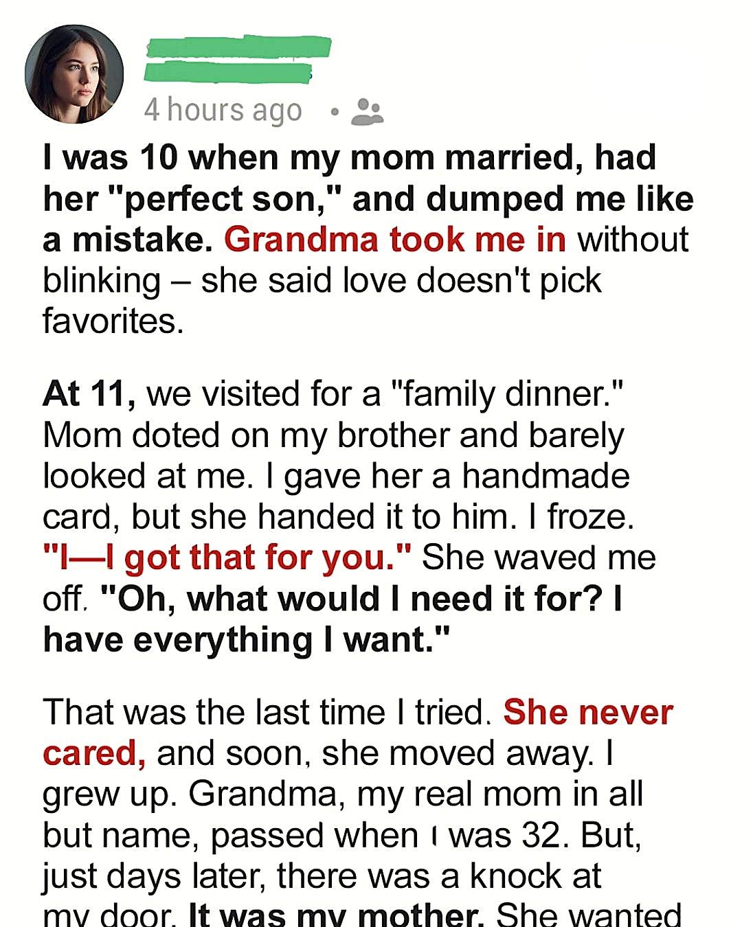 My Mother Abandoned Me for Her New Family—Years Later, She Knocked on My Door for One Thing