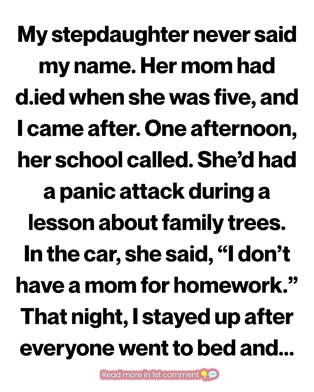 If she needed a permission slip signed or a snack after school, she’d ask her dad to ask me. If I tried to help directly, she’d stiffen, like my voice itself was something sharp. Her mother had died when she was five—sudden, cruel, the kind of loss that leaves a permanent echo. I was the woman who arrived afterward, when the worst had already carved its place in the house.