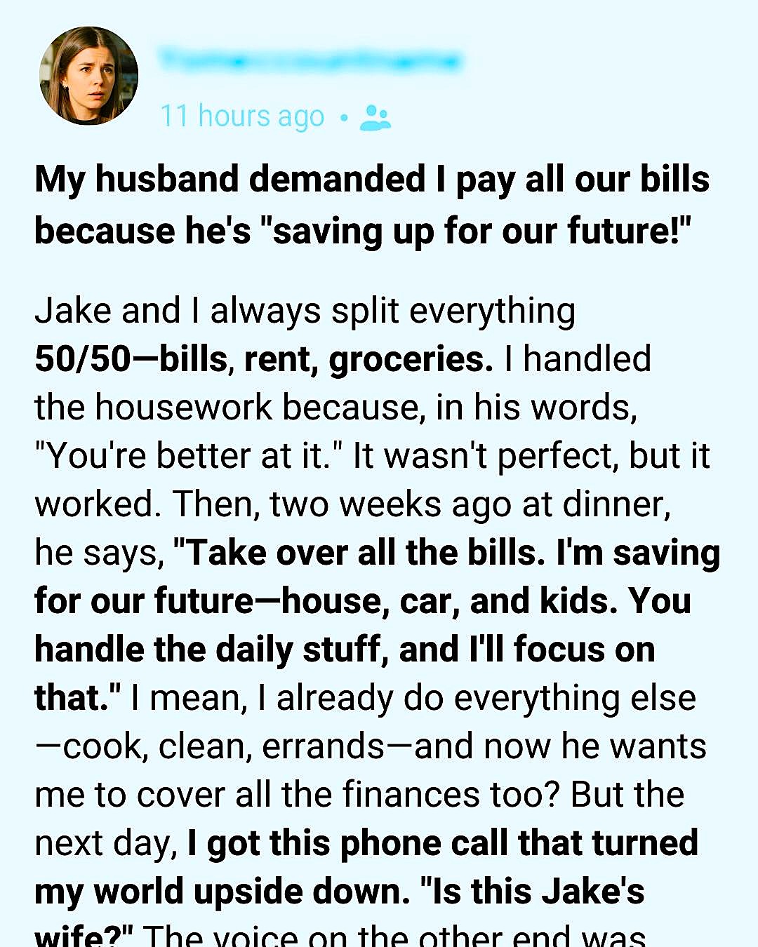 For two days, I couldn’t shake Anna’s words. They replayed in my mind, tangled with Jake’s smug suggestion about “saving for our future.” None of it made sense. The late nights, the sudden secrecy with his phone, how quickly he dismissed my concerns—it all pointed to something I had willfully ignored. How had I been so blind?
