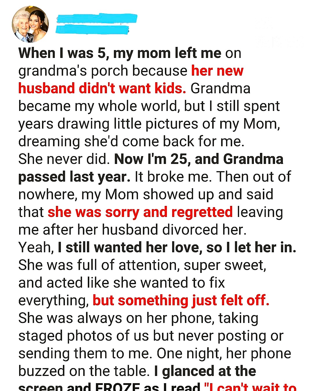 My Mom Left Me at Grandma’s Door When I Was 5 Because Her Husband Didn’t Want Kids—20 Years Later, She Returned Asking for Forgiveness