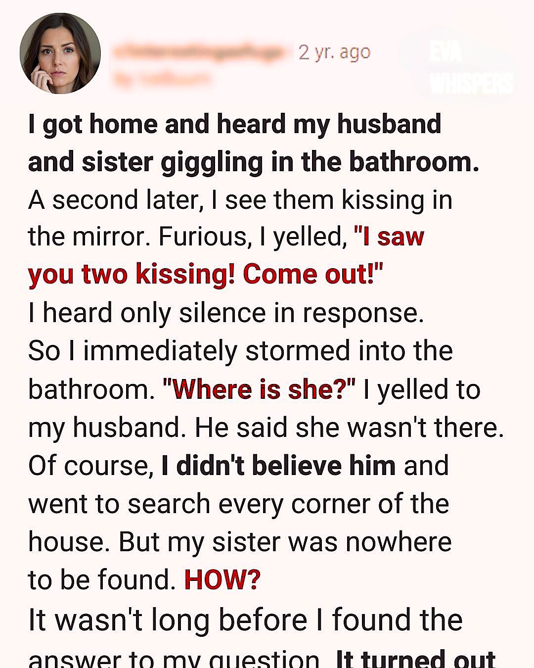 Earlier that afternoon, my sister had been standing behind my husband while he shaved, teasing him about a silly nickname from childhood. They’d laughed. I’d walked past the bathroom then too—just for a second.