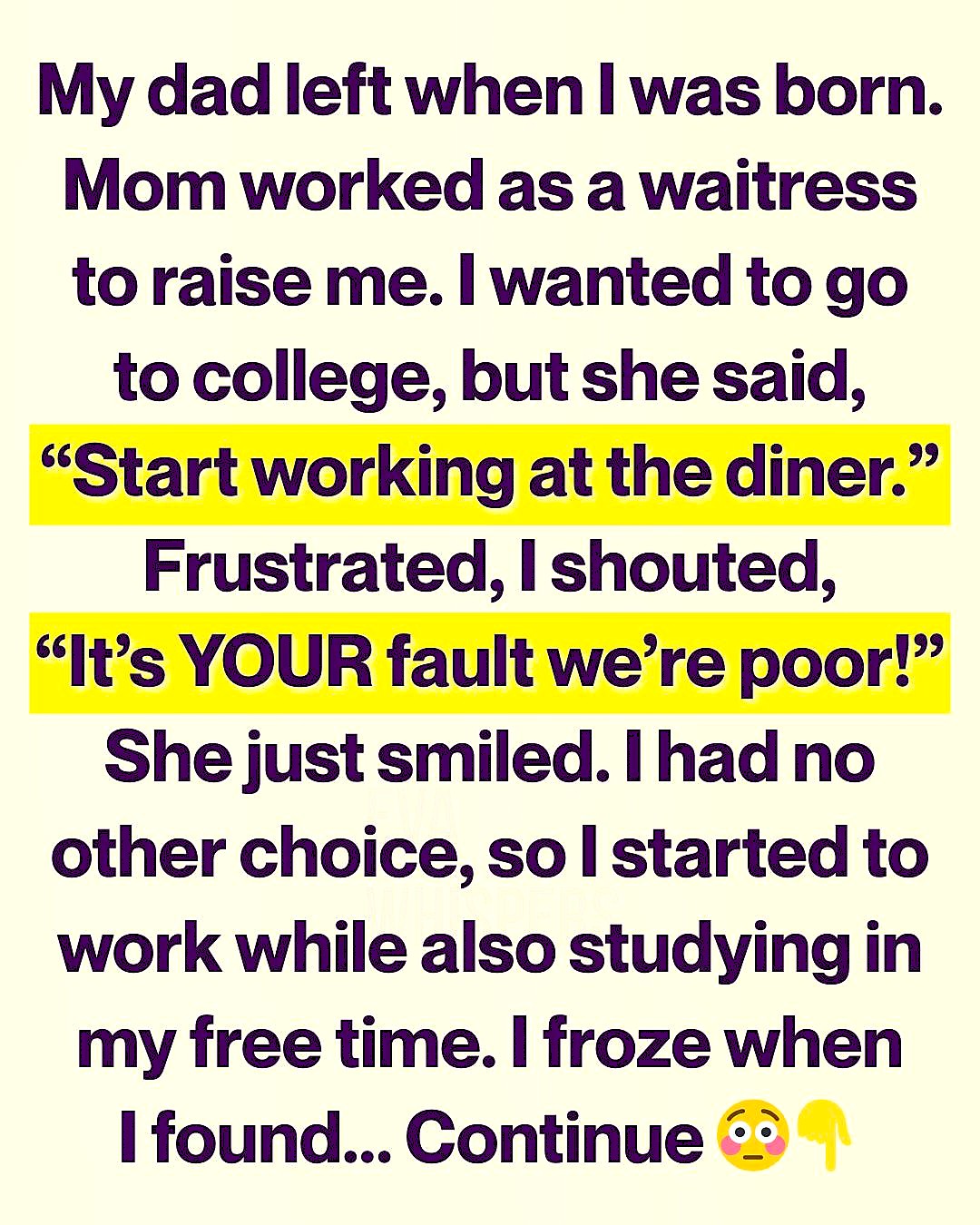 She worked as a waitress at a small diner on the edge of town. I grew up watching her tie her apron before dawn and come home long after dark, her shoes worn thin, the smell of coffee and grease clinging to her clothes. She never talked about being tired, but I saw it—in the way her shoulders slumped when she thought I wasn’t looking, in how she counted every dollar before paying the bills.