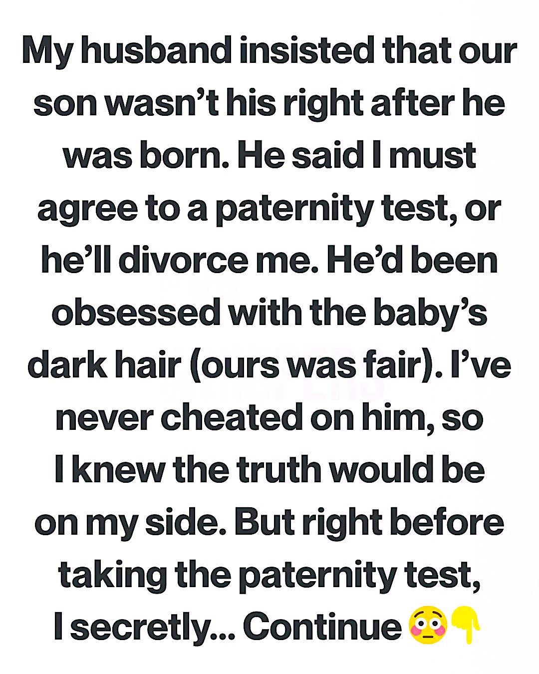 He latched onto one thing: our baby’s dark hair. Both of us are fair-haired, so he convinced himself it was “proof” of my infidelity. He wouldn’t listen to logic, genetics, or the simple fact that sometimes recessive traits appear. He wanted the test. He wanted a reason to leave.