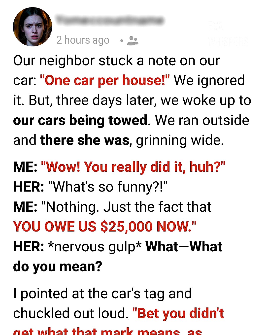 She smiled as our cars were hauled away, convinced she had won some neighborhood battle. But by the next morning, she was standing on her porch in shock, facing a $25,000 mistake she’d never forget.
