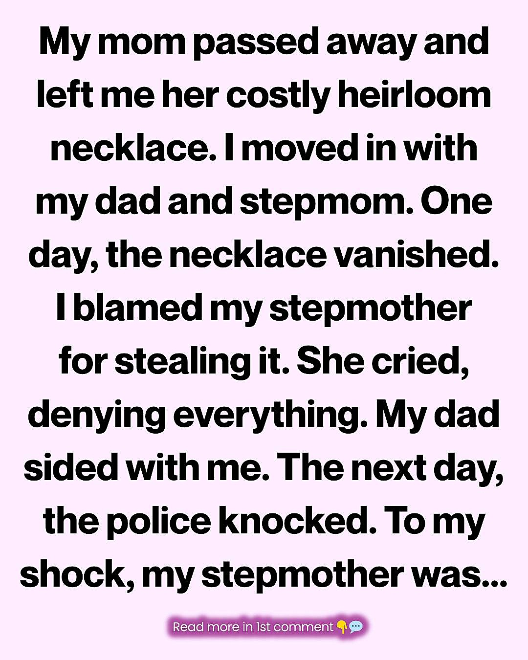 When my mom died, the world dimmed in a way I didn’t know how to fix. The only thing that still felt like her was the heirloom necklace she left me—an intricate gold pendant passed down through generations. I guarded it like a piece of my own heart.