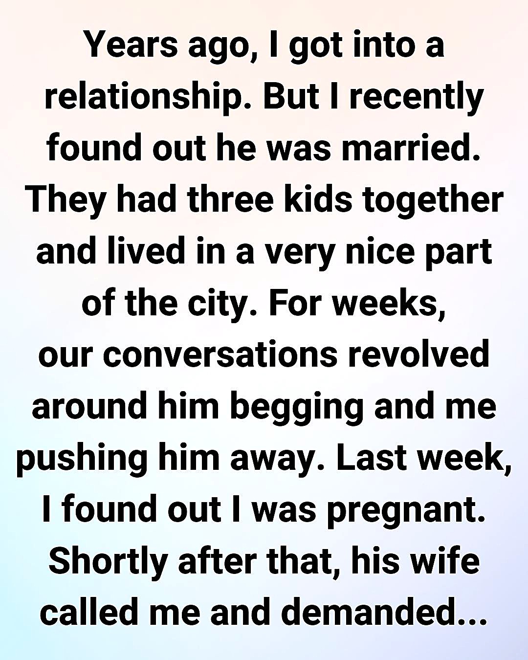 But recently, I learned the real reason—he was married. He had a wife, whom he’d been married to for ten years. They had three children together and lived in a very nice part of the city. I only discovered the truth because his wife confronted me about the “affair.”
