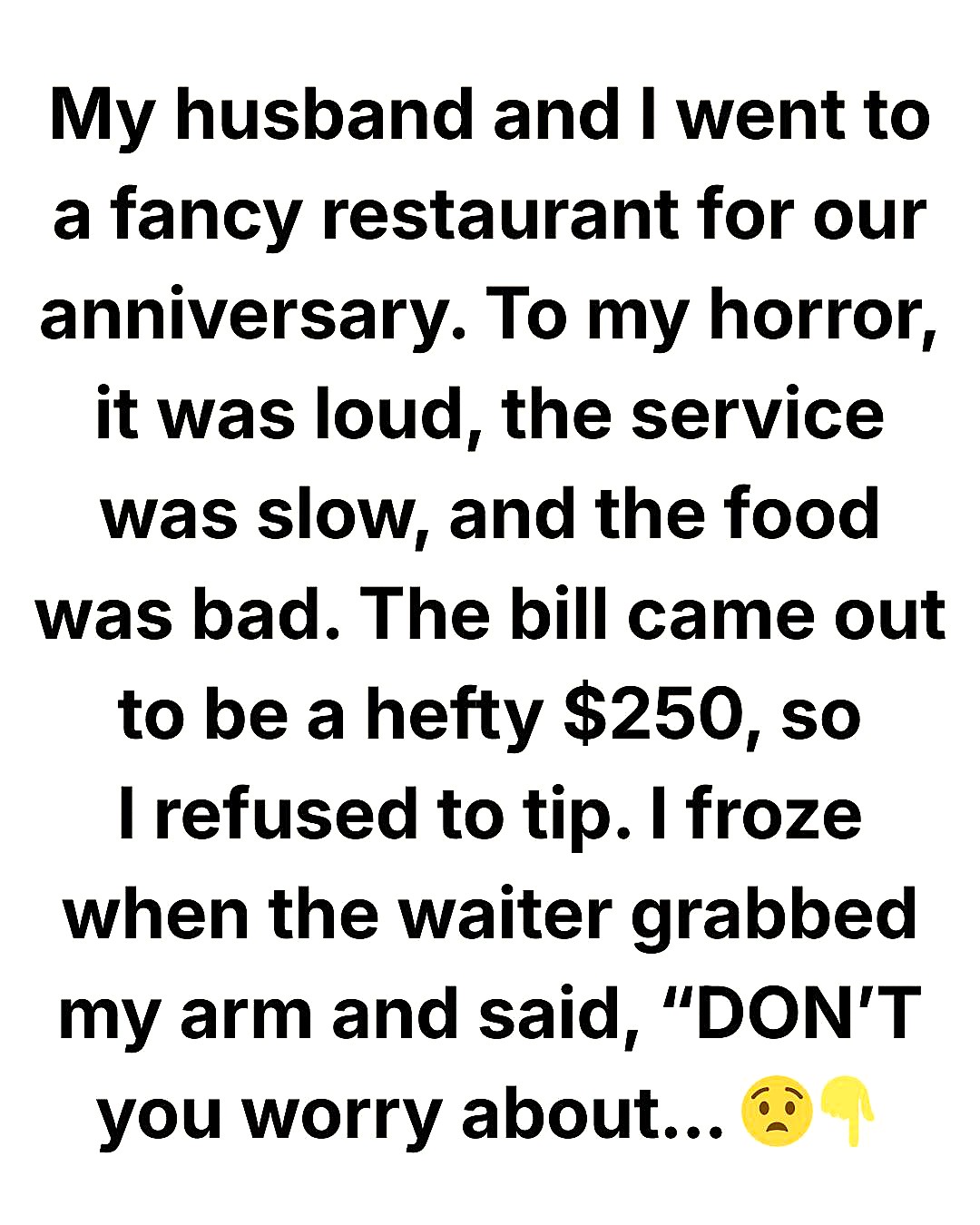 Then the bill came—a hefty $250. For slow service, bad food, and zero effort, that number stung.